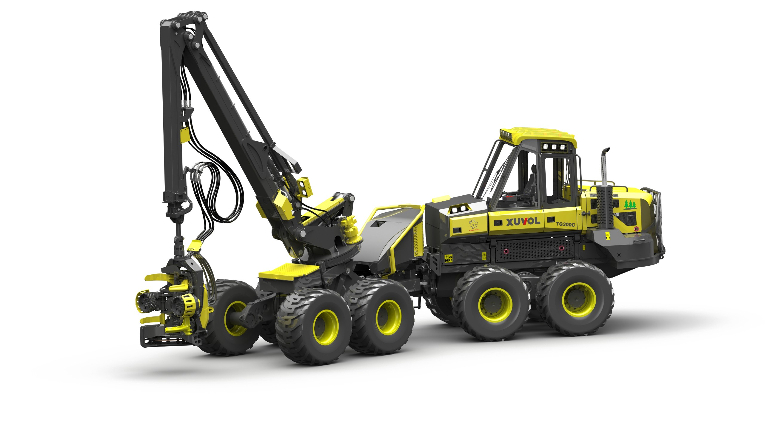 中國首臺(tái)(套) 徐沃林間輪式采伐機(jī)TG300C是中國自主設(shè)計(jì)第一臺(tái)、自主生產(chǎn)第一臺(tái)、自主銷售第一臺(tái)、出口海外第一臺(tái)的大型林業(yè)機(jī)械。新型XUVOL采伐機(jī)采用獨(dú)特的八輪浮動(dòng)鉸接式車架,越野性能優(yōu)異,加上動(dòng)力強(qiáng)勁的六缸發(fā)動(dòng)機(jī)、大流量液壓泵、充裕的散熱性能,無論是在寒冷的森林還是炎熱的雨林都能從容應(yīng)對,無懼陡坡、泥濘道路、厚虧,砥礪前行。經(jīng)過不斷調(diào)教改進(jìn),它的起重臂和伐木機(jī)頭操作精準(zhǔn),且容易上手使用,基于強(qiáng)勁可靠的硬件和人性化的操控體驗(yàn),使得XUVOL采伐機(jī)成為一款優(yōu)秀的林業(yè)采伐工具,一個(gè)稱心如意的好幫手。